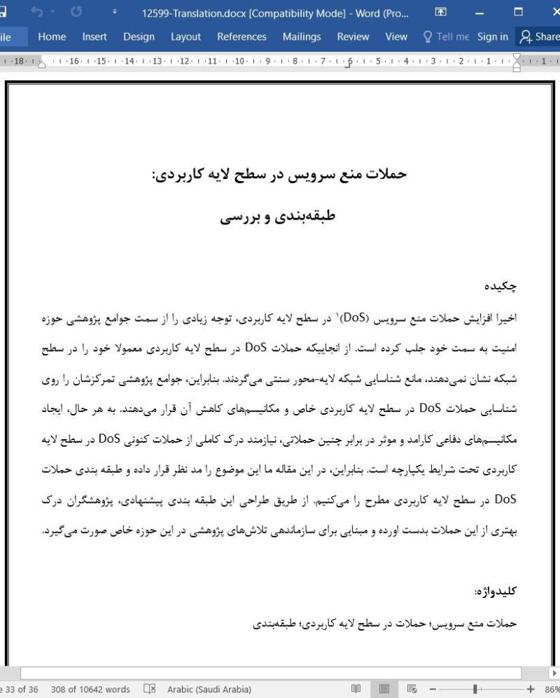 اخیرا افزایش حملات منع سرویس (DoS) در سطح لایه کاربردی، توجه زیادی را از سمت جوامع پژوهشی حوزه امنیت به سمت خود جلب کرده است. از انجاییکه حملات DoS در سطح لایه کاربردی معمولا خود را در سطح شبکه نشان نمیدهند، مانع شناسایی شبکه لایه-محور سنتی میگردند. بنابراین، جوامع پژوهشی تمرکزشان را روی شناسایی حملات DoS در سطح لایه کاربردی خاص و مکانیسمهای کاهش آن قرار میدهند. به هر حال، ایجاد مکانیسمهای دفاعی کارامد و موثر در برابر چنین حملاتی، نیازمند درک کاملی از حملات کنونی DoS در سطح لایه کاربردی تحت شرایط یکپارچه است. بنابراین، در این مقاله ما این موضوع را مد نظر قرار داده و طبقه بندی حملات DoS در سطح لایه کاربردی مطرح را میکنیم. از طریق طراحی این طبقه بندی پیشنهادی، پژوهشگران درک بهتری از این حملات بدست اورده و مبنایی برای سازماندهی تلاشهای پژوهشی در این حوزه خاص صورت میگیرد.