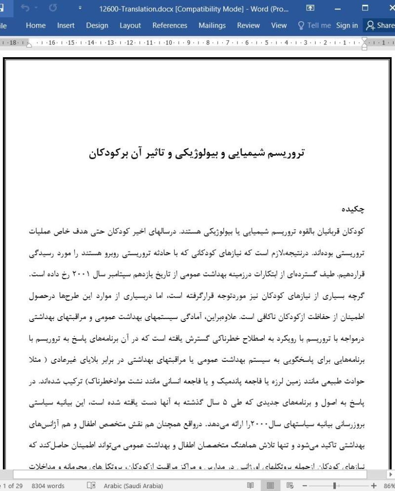 کودکان قربانیان بالقوه تروریسم شیمیایی یا بیولوژیکی هستند. درسالهای اخیر کودکان حتی هدف خاص عملیات تروریستی بوده¬اند. درنتیجه،لازم است که نیازهای کودکانی که با حادثه تروریستی روبرو هستند را مورد رسیدگی قراردهیم. طیف گسترده¬ای از ابتکارات درزمینه بهداشت عمومی از تاریخ یازدهم سپتامبر سال 2001 رخ داده است. گرچه بسیاری از نیازهای کودکان نیز موردتوجه قرارگرفته است، اما دربسیاری از موارد این طرح¬ها درحصول اطمینان از حفاظت ازکودکان ناکافی است. علاوه¬براین، آمادگی سیستمهای بهداشت عمومی و مراقبتهای بهداشتی درمواجه با تروریسم با رویکرد به اصطلاح خطرناکی گسترش یافته است که در آن برنامه¬های پاسخ به تروریسم با برنامه¬هایی برای پاسخگویی به سیستم بهداشت عمومی یا مراقبتهای بهداشتی در برابر بلایای غیرعادی ( مثلا حوادث طبیعی مانند زمین لرزه یا فاجعه پاندمیک و یا فاجعه انسانی مانند نشت موادخطرناک) ترکیب شده¬اند. در پاسخ به اصول و برنامه¬های جدیدی که طی 5 سال گذشته به آنها دست یافته شده است، این بیانیه سیاستی بروزرسانی بیانیه سیاستهای سال2000را ارائه می¬دهد. درواقع همچنان هم نقش متخصص اطفال و هم آژانس¬های بهداشتی تاکید می¬شود و تنها تلاش هماهنگ متخصصان اطفال و بهداشت عمومی می¬تواند اطمینان حاصل¬کند که نیازهای کودکان ازجمله پروتکلهای اورژانس در مدارس و مراکز مراقبت ازکودکان، پروتکل های محرمانه و مداخلات بهداشتی روان موفق خواهد بود.