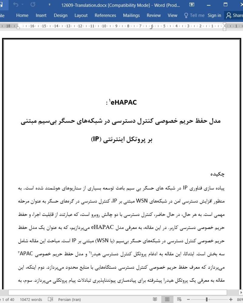 پیاده سازی فناوری IP در شبکه های حسگر بی سیم باعث توسعه بسیاری از سناریوهای هوشمند شده است.. به منظور افزایش دسترسی امن در شبکههای WSN مبتنی بر IP، کنترل دسترسی در گرههای حسگر به عنوان مرحله مهمی است. به هر حال، در حال حاضر، کنترل دسترسی با دو چالش روبرو است، که عبارتند از قابلیت اجرا، و حفظ حریم خصوصی دسترسی کاربر. در این مقاله، به معرفی مدل eHAPAC میپردازیم، که به عنوان یک مدل حفظ حریم خصوصی کنترل دسترسی در شبکههای حسگر بیسیم (یا WSN) مبتنی بر IP است. مباحث این مقاله شامل سه بخش است. ابتدائا، این مقاله به ادغام پروتکل کنترل دسترسی هیدرا و مدل حفظ حریم خصوصی APAC میپردازد که معرف حفظ حریم خصوصی کنترل دسترسی دستگاههایی با منابع محدود میپردازد. دوم اینکه، این مقاله به معرفی یک پروتکل هیدرا پیشرفته برای پیادهسازی پیوندناپذیری تبادلات پیام پروتکلی میپردازد. سوم، به منظور حل مسئله اعتبار شخص ثالث، این مقاله به توسعه مدل APAC مبتنی بر امضا گروهی پرداخته، و از فناوری بلاکچین برای مدیریت ذخیرهسازی و انتشار کلید عمومی امضا گروهی استفاده میکند. تحلیل امنیتی و ارزیابی عملکرد، اثبات میکند که پروتکل مورد نظر ما امن و کارامد است.