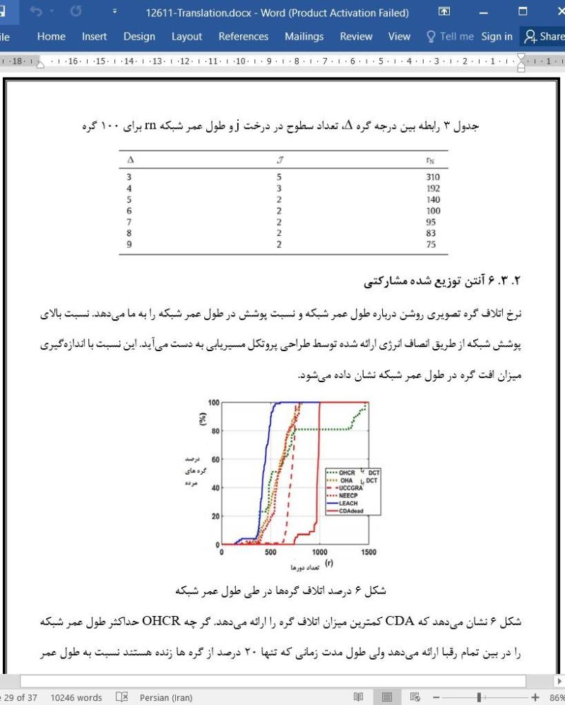 شبکه حسگر بیسیم (که به اختصار WSN نامیده میشود) گروهی از گرههای بسیار کوچک با توانی محدود هستند که منطقه مطلوب (ROI) پهناوری را پوشش میدهند و آن را حس میکنند و آن را به ایستگاه پایه (BS) مخابره میکنند. اصلیترین چالشی که WSNها با آن روبرو هستند این است که چگونه میتوان ROI را به شکلی کامل پوشش داد و دادههای نظارت شده را به BS برای طولانیترین زمان ممکن مخابره کنیم. با وجود اینکه اخیرا بسیاری پروتکلهای مسیریابی کممصرف برای برنامههای کاربردی نظارت دورهای معرفی شدهاند ولی ماهیت پویا و محیطهای پیچیده برنامههای کاربردی WSN سبب شده است که ساخت چنین پروتکلهایی چالشی قابلتوجه باشد. در این مقاله درجه گره درختی با محدودیت درجه (DCT) در WSN پیشفعال همگن به شکلی تحلیلی برای شبکهای با یک BS خارج از ROI مورد بررسی قرار گرفته است. از آنجایی که درجه گره بر طول عمر شبکههایی از این نوع تاثیر میگذارد، درجه گره مطلوب برای کمینه مصرف انرژی در DCT مشتق شده است. در ادامه مقاله، یک پروتکل مسیریابی آنتن توزیع شده مشارکتی (CDA) پیشنهاد میشود که بر اساس نظریه آنتن توزیع شده است تا بدین شکل توزیع بار به شکلی عادلانه از نظر انتقال انرژی صورت بگیرد. CDA بر اساس DCT با درجه گره بهینه است و به منظور نظارت بر دادهها به شکل دورهای در برنامههای کاربردی WSN طراحی شده است. نتایج تجربی ثابت میکند که تجزیه و تحلیل ما تاکید میکند که استفاده از درجه گره بهینه در DCT سبب دو برابر شدن طول عمر شبکه خود در قیاس با استفاده از درجههای دیگر گره خواهد شد. علاوه بر این ثابت شده است که افزودن CDA به DCT با درجه گره مطلوب سبب دو برابر شدن دوره ثبات شبکه و کاهش نسبت بین دوره بیثباتی و طولعمر شبکه به نیمی از آن میشود. همچنین از این نتایج شاهد 25% افزایش طول عمر شبکه و به حداقلرسانی میزان تلفات گره نسبت به همتایان خود هستیم به طوی که طول عمر نصف گرهها تا چند دوره قبل از پایان طول عمر شبکه حفظ میشود.