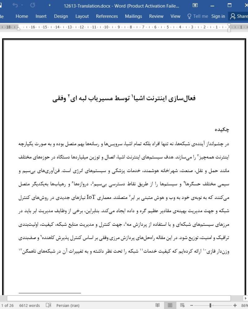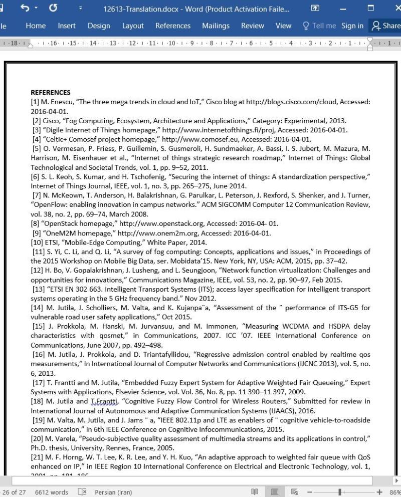 در چشمانداز آیندهی شبکهها، نه تنها افراد بلکه تمام اشیا، سرویسها و رسانهها بهم متصل بوده و به صورت یکپارچه اینترنت همهچیز را میسازند. هدف سیستمهای اینترنت اشیا، اتصال و توزین میلیاردها دستگاه در حوزههای مختلف مانند حمل و نقل، صنعت، شهر/خانه هوشمند، خدمات پزشکی و سیستمهای انرژی است. فنآوریهای بیسیم و سیمی مختلف حسگرها و سیستمها را از طریق نقاط دسترسی بیسیم ، دروازهها و رهیابها بهیکدیگر متصل میکنند که به نوبهی خود به وب و هوش متبنی بر ابر متصلند. معماری IoT نیازهای جدیدی در روشهای کنترل شبکه و جهت مدیریت بهینهی مقادیر عظیم گره و داده ایجاد میکند. بنابراین، برخی از وظایف مدیریت ابر باید در مرزهای سیستمهای شبکهای و با استفاده از پردازش مه ، جهت کنترل و مدیریت منابع شبکه، کیفیت، اولیتبندی ترافیک و امنیت، توزیع شود. در این مقاله راهحلهای پردازش مرزی وفقی بر اساس کنترل پذیرش کاهنده و صفبندی وزندار فازی ارائه کردهایم که کیفیت خدمات شبکه را تحت نظر داشته و به تغییرات آن در شبکههای ناهمگن واکنش میدهد و در یک سناریوی مورد استفاده در رسانگرها ، از تکنولوژی IEEE 802.11p استفاده شده است. این راهحلهای وفقی عملکرد پایدارتر شبکه و بهینهسازی مسیر شبکه و منابع را مسیر میسازند.