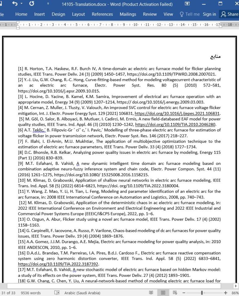 یافتن بارهای غیرخطی متغیر با زمان در سراسر سیستم های توزیع معمول است، مانند کوره های قوس الکتریکی (EAFs) که به صورت گسترده در بخش صنعتی فولادسازی مورد استفاده واقع می شوند. بر اساس فرآیند ذوب و تصفیه فلزات، کوره های قوس الکتریکی (EAF) بلوک های بزرگی از توان را مصرف می کنند (توان اکتیو و راکتیو) که منجر به اختلالات چشمگیری در کیفیت توان از جمله نوسانات هارمونیک و ولتاژ در شبکه های توزیع می شوند. مدل های پارامتریک کوره های قوس الکتریکی (EAF) مختلف با هدف پیش بینی شکل موج ولتاژ و جریان و سپس ارزیابی عملکرد دستگاه های جبران سازی توان راکتیو مطرح شده اند. این مقاله یک روش شناسی جدید را جهت تخمین بهینه پارامترهای یک مدل کوره قوس الکتریکی مطرح می کند که می تواند زمان اجرا و میزان خطای کمتری را در مقایسه با برخی از روش های روز دنیا به دست آورد. روش شناسی با استفاده از داده های واقعی و شبیه سازی شده و از طریق سه الگوریتم بهینه سازی فراابتکاری از جمله الگوریتم بهینه سازی ازدحام ذرات (PSO)، الگوریتم جستجوی گرداب (VSA) و الگوریتم جستجوی کلاغ (CSA) مورد ارزیابی قرار می گیرد. بر اساس نتایج، روش شناسی مطرح شده بر پایه ی رویکردهای بهینه سازی فراابتکاری به طور موثر عمل نموده و امکان تخمین پارامترهای مدل کوره قوس الکتریکی را از طریق یک مرحله بهینهسازی واحد، ثبت رفتار تصادفی غیر سینوسی، غیر خطی و متغیر با زمان را فراهم می کند که نمونه های کوره قوس الکتریکی واقعی را نشان میدهد. خطاهای نسبی اعوجاج هارمونیک کل بین سیگنال های جریان و ولتاژ قوس تخمینی و برآورد شده به ترتیب حدود 1.23 درصد و 0.62 درصد به دست آمده اند.