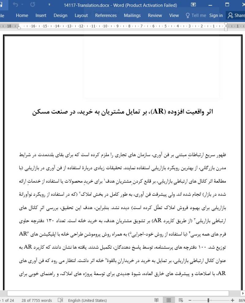 ظهور سریعِ ارتباطاتِ مبتنی بر فن آوری، سازمان های تجاری را ملزم کرده است که برای بقای بلندمدت در شرایط مدرن بازرگانی، از بهترین رویکرد بازاریابی استفاده نمایند. تحقیقات زیادی دربارۀ استفاده از فن آوری در بازاریابی (با مطالعۀ اثر کانال های ارتباطیِ بازاریابی، بر قانع کردن ِمشتریانِ هدف برای خریدِ محصولات یا استفاده از خدماتِ ارائه شده در بازار) انجام شده اند. ولی پیشرفت فن آوری، به طور کامل در بخش املاک (که در استفاده از رویکرد نوآورانۀ بازاریابی برای بهبود فروش املاک تعلّل کرده است) دیده نشد. بنابراین، هدف این تحقیق، بررسی اثرِ کانال های ارتباطیِ بازاریابی (از طریق کاربرد AR) بر تشویق مشتریانِ هدف، به خرید خانه است. تعداد 130 دفترچه حاوی فرم های همه پرسی (با استفاده از روش خود-اجرایی ) به همراه روش پروموشنِ طراحی خانه با اپلیکیشن های AR توزیع شد. 100 دفترچه های پرسشنامه، توسط پاسخ دهندگان، تکمیل شدند. یافته ها نشان دادند که کاربرد AR به عنوان کانال ارتباطیِ بازاریابی، بر تمایل به خرید در خریدارانِ بالقوۀ خانه اثر داشت. انتظار می رود که فن آوری های AR، با اصلاحات و پیشرفت های خارق العاده، شیوۀ جدیدی برای توسعۀ پروژه های املاک، و راهنمای خوبی برای توسعه دهندگان ایجاد نمایند. این ابتکار می تواند ارتباطاتِ بازاریابی را بهبود بخشد و خریداران خانه را بر اساسِ علائِقشان جذب نماید.