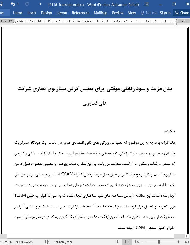 مک گراث با توجه به این موضوع که تغییرات، ویژگی های ذاتی اقتصادی امروز می باشند؛ یک دیدگاه استراتژیک جدیدی را مبنی بر مفهوم مزیت رقابتی گذرا معرفی کرده است. مفهوم آن، با مفاهیم استراتژیک سنتی و قدیمی که مبتنی بر ثبات و سکون بازار است، متفاوت می باشد. بر این اساس، هدف پژوهش و تحقیق حاضر؛ تحلیل کردن سناریوی کسب و کار در موقعیت گذرا بر طبق مدل مزیت رقابتی گذرا (TCAM) است. برای عملی کردن این کار، یک مطالعه موردی بر روی سه شرکت فناوری که به دست انکوباتورهای تجاری در برزیل درجه بندی شده بودند؛ انجام شده است. این مطالعه از روش مصاحبه های شبه ساختاری انجام شده که به صورت کیفی بر طبق TCAM مورد تجزیه و تحلیل قرار گرفته است و نتیجه ها، یک " محیط سازگار اما غیر سیستماتیک و واکنشی " را در سه شرکت ارزیابی شده، نشان داده اند. ضمن اینکه، هدف مورد نظر کمک کردن به گسترش مفهوم مزایا و سود گذرا و اعتبار سنجی TCAM بوده است.
