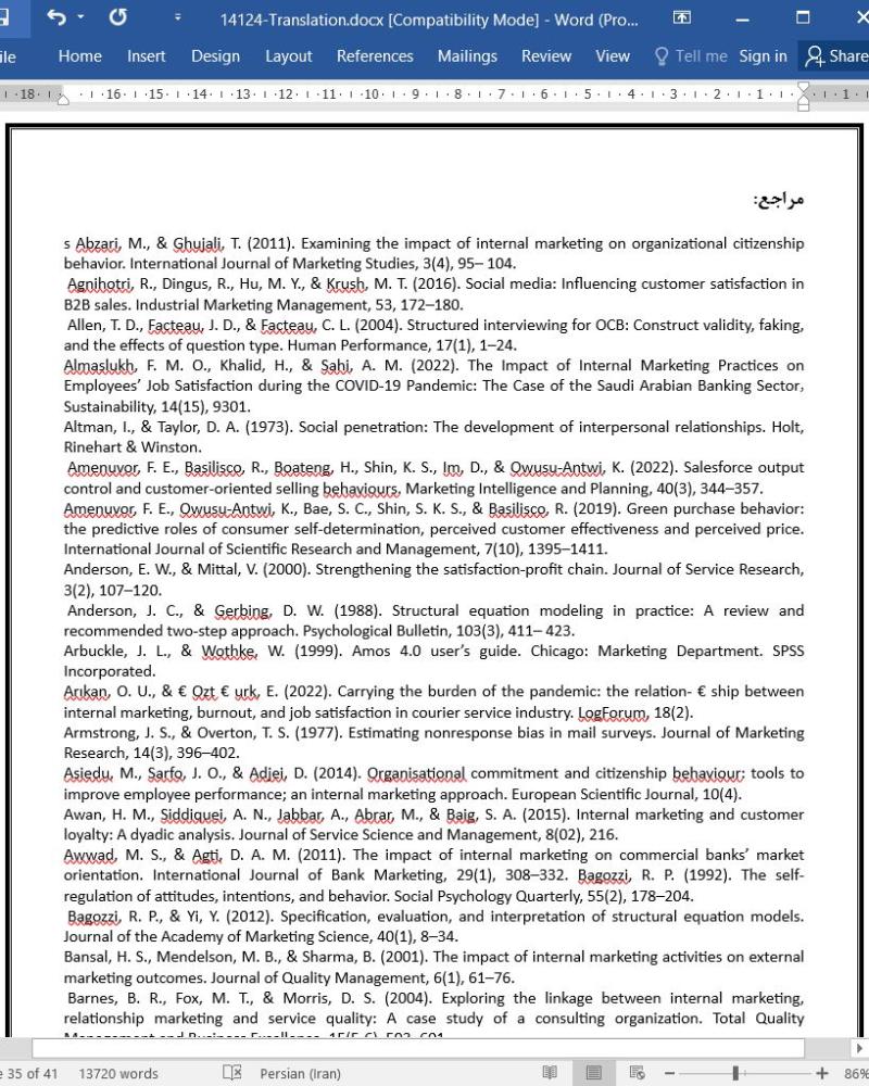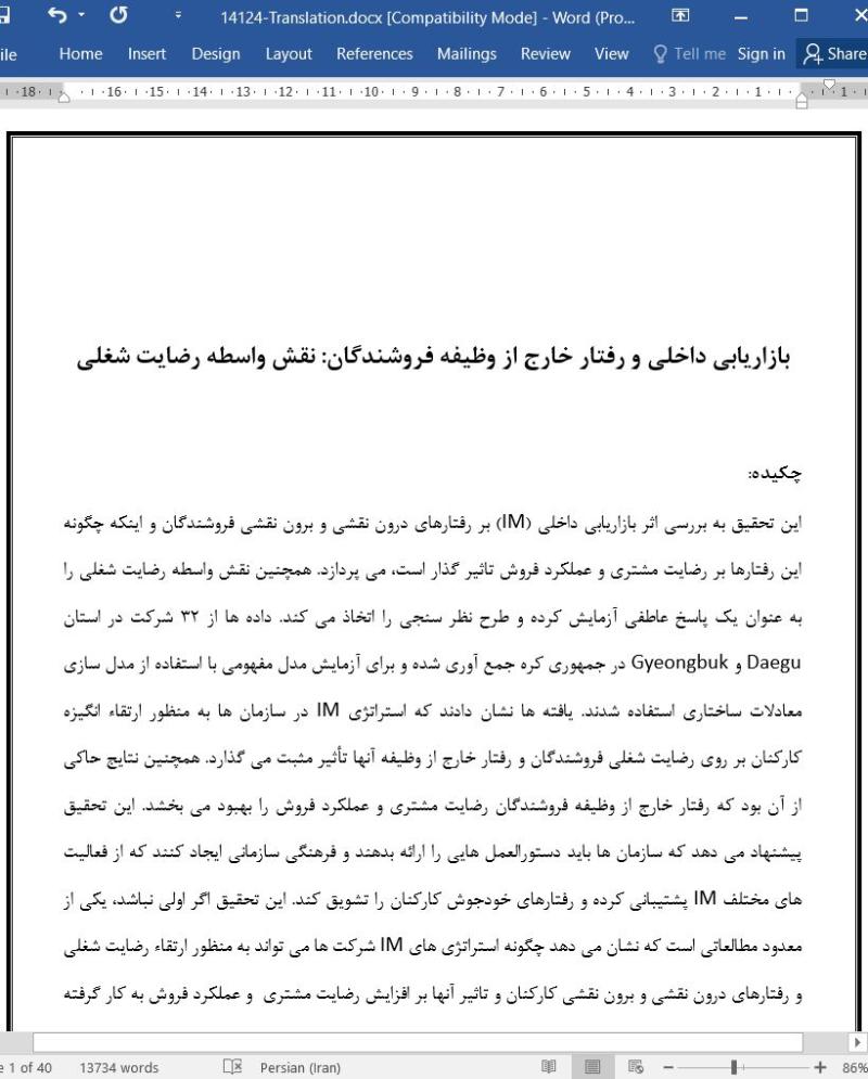 این تحقیق به بررسی اثر بازاریابی داخلی (IM) بر رفتارهای درون نقشی و برون نقشی فروشندگان و اینکه چگونه این رفتارها بر رضایت مشتری و عملکرد فروش تاثیر گذار است، می پردازد. همچنین نقش واسطه رضایت شغلی را به عنوان یک پاسخ عاطفی آزمایش کرده و طرح نظر سنجی را اتخاذ می کند. داده ها از 32 شرکت در استان Daegu و Gyeongbuk در جمهوری کره جمع آوری شده و برای آزمایش مدل مفهومی با استفاده از مدل سازی معادلات ساختاری استفاده شدند. یافته ها نشان دادند که استراتژی IM در سازمان ها به منظور ارتقاء انگیزه کارکنان بر روی رضایت شغلی فروشندگان و رفتار خارج از وظیفه آنها تأثیر مثبت می گذارد. همچنین نتایج حاکی از آن بود که رفتار خارج از وظیفه فروشندگان رضایت مشتری و عملکرد فروش را بهبود می بخشد. این تحقیق پیشنهاد می دهد که سازمان ها باید دستورالعمل هایی را ارائه بدهند و فرهنگی سازمانی ایجاد کنند که از فعالیت های مختلف IM پشتیبانی کرده و رفتارهای خودجوش کارکنان را تشویق کند. این تحقیق اگر اولی نباشد، یکی از معدود مطالعاتی است که نشان می دهد چگونه استراتژی های IM شرکت ها می تواند به منظور ارتقاء رضایت شغلی و رفتارهای درون نقشی و برون نقشی کارکنان و تاثیر آنها بر افزایش رضایت مشتری و عملکرد فروش به کار گرفته شود.