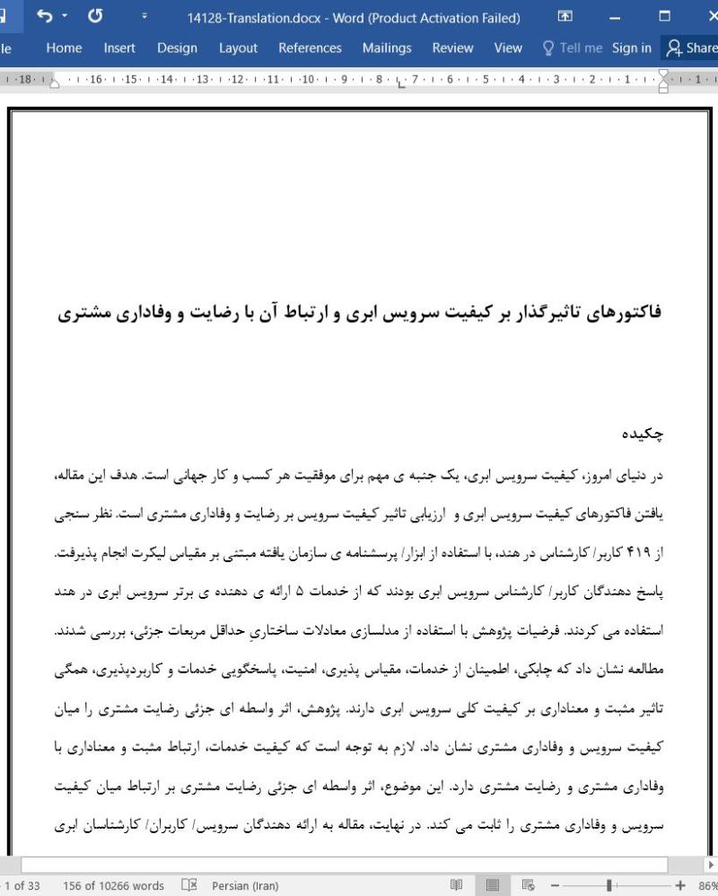 در دنیای امروز، کیفیت سرویس ابری، یک جنبه ی مهم برای موفقیت هر کسب و کار جهانی است. هدف این مقاله، یافتن فاکتورهای کیفیت سرویس ابری و ارزیابی تاثیر کیفیت سرویس بر رضایت و وفاداری مشتری است. نظر سنجی از 419 کاربر/ کارشناس در هند، با استفاده از ابزار/ پرسشنامه ی سازمان یافته مبتنی بر مقیاس لیکرت انجام پذیرفت. پاسخ دهندگان کاربر/ کارشناس سرویس ابری بودند که از خدمات 5 ارائه ی دهنده ی برتر سرویس ابری در هند استفاده می کردند. فرضیات پژوهش با استفاده از مدلسازی معادلات ساختاریِ حداقل مربعات جزئی، بررسی شدند. مطالعه نشان داد که چابکی، اطمینان از خدمات، مقیاس پذیری، امنیت، پاسخگویی خدمات و کاربردپذیری، همگی تاثیر مثبت و معناداری بر کیفیت کلی سرویس ابری دارند. پژوهش، اثر واسطه ای جزئی رضایت مشتری را میان کیفیت سرویس و وفاداری مشتری نشان داد. لازم به توجه است که کیفیت خدمات، ارتباط مثبت و معناداری با وفاداری مشتری و رضایت مشتری دارد. این موضوع، اثر واسطه ای جزئی رضایت مشتری بر ارتباط میان کیفیت سرویس و وفاداری مشتری را ثابت می کند. در نهایت، مقاله به ارائه دهندگان سرویس/ کاربران/ کارشناسان ابری توصیه می کند تا هنگام کوچ به سرویس های ابری، توجه ویژه ای به این فاکتورها داشته باشند.