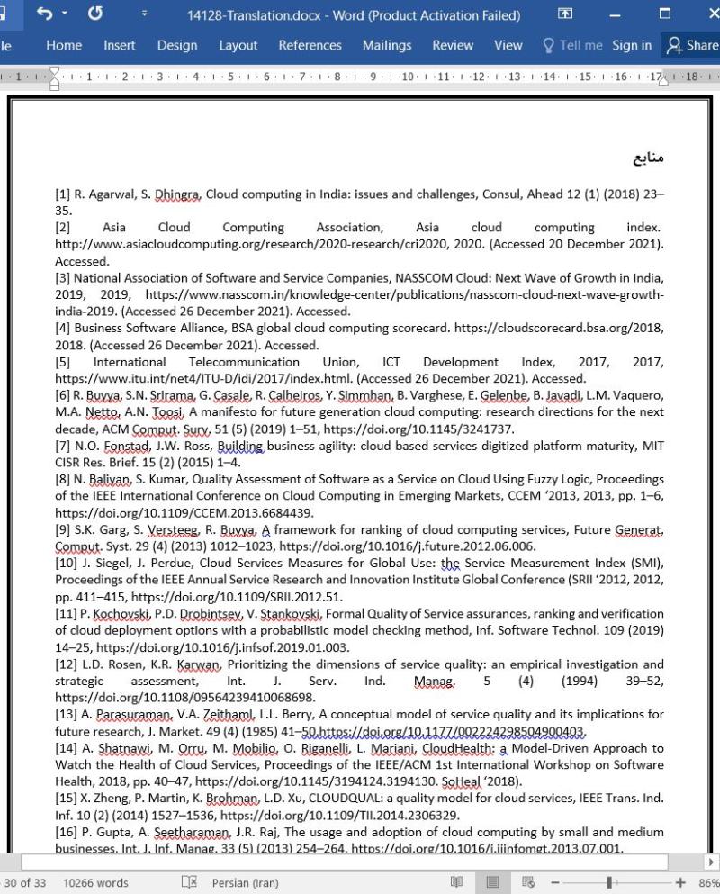 پس از شناسایی فاکتورها از طریق مرور کامل ادبیات، با استفاده از تکنیک دلفی برای استنتاج فاکتورهای نهایی کیفیت سرویس ابری، یک بحث اکتشافی با کاربران/ کارشناسان سرویس ابری صورت پذیرفت. جمعا 72 کاربر/ کارشناس سرویس ابری از حوزه های فنی و کارکردی متفاوت که با سرویس ابری سرو کار داشتند، مانند معماران، مشاوران طراحی، مدیران برنامه، مدیران پروژه و مهندسین سرویس ابری و کاربران سرویس ابری در تکنیک دلفی شرکت داده شدند. کوشاگرا و دینگرا (2019) [50]، برای شناسایی فاکتورهای پذیرش سرویس ابری در بخش دولتی هند، به تکنیک دلفی اشاره نموده اند. کاربران/ کارشناسان سرویس ابری درگیر در بحث، تجربه ی استفاده از نرم افزار به عنوان سرویس (SaaS)، پلتفورم به عنوان سرویس (PaaS)، و زیرساخت به عنوان سرویس (IaaS) را داشتند. این سه سرویس، یازده فاکتور را شناسایی نموده بودند که شامل چابکی، اطمینان از سرویس، دسترس پذیری، همکاری متقابل، تاخیر، قابلیت اعتماد، مقیاس پذیری، امنیت، توافق بر روی سطح خدمات، پاسخگویی سرویس و کاربردپذیری بود. در مباحثه ی بعدی با کارشناسان/ کاربران سرویس ابری، تعداد فاکتورهای کیفیت سرویس ابری به هفت مورد چابکی، اطمینان از سرویس، قابلیت اعتماد، مقیاس پذیری، امنیت، پاسخگویی سرویس و کاربردپذیری کاهش یافت.