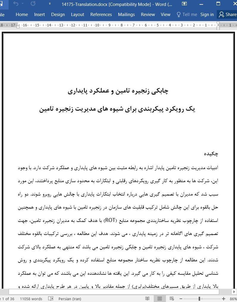 ادبیات مدیریت زنجیره تامین پایدار اشاره به رابطه مثبت بین شیوه های پایداری و عملکرد شرکت دارد. با وجود این، شرکت ها به منظور به کار گیری رویکردهای رقابتی و ابتکارات به محدود سازی منابع پرداختند، این مورد سبب شد که مدیران با تصمیم گیری هایی درباره انتخاب ابتکارات پایداری با چالش هایی روبرو شوند. دو راه حل بالقوه برای این چالش شامل ترکیب قابلیت های سازمان در زنجیره تامین با شیوه های پایداری و همچنین استفاده از چارچوب نظریه ساختاربندی مجموعه منابع (ROT) با هدف کمک به مدیران زنجیره تامین، جهت تصمیم گیری های اگاهانه تر در زمینه پایداری ، می شوند. هدف این مطالعه ، بررسی ترکیبات بالقوه مختلف شرکت ، شیوه های پایداری زنجیره تامین و چابکی زنجیره تامین می باشد که منتهی به عملکرد بالای شرکت شدند. این مطالعه از چارچوب نظریه ساختار مجموعه منابع استفاده کرده و یک رویکرد پیکربندی و روش شناسی تحلیل مقایسه کیفی را به کار می گیرد. این یافته ها نشاندهنده این می باشند که می توان به عملکرد بالا پایداری از طریق مسیرهای مختلف(برابری) از جمله مقادیر بالا و پایین در هر طرح پایداری ارائه شده و همچنین چابکی زنجیره تامین(عدم تقارن) دست یافت. همچنین این یافته ها نشان می دهند که نتایج بستگی به چگونگی ترکیب شیوه ها به جای تاثیرات واحد انها دارند.