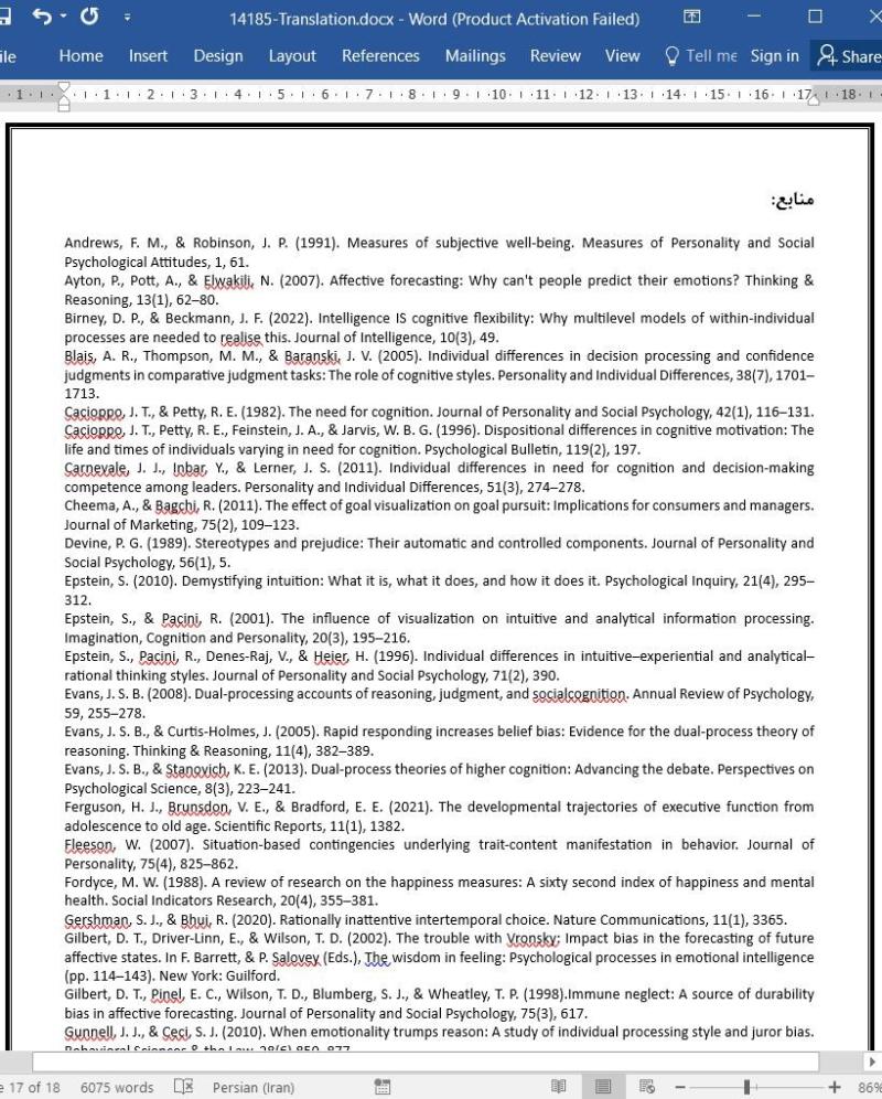 پردازش شناختی، را به دو صورت پردازش شناختی گرایشی و موقعیتی، می توان در نظر گرفت. افراد تمایل دارند که گرایشی با ثبات و قابل اعتماد به سوی پردازش عقلانی را از خود نشان دهند (Epstein & Pacini, 2001). NFC معیاری از میزان تمایل افراد به پردازشی تلاشمند است، که در تعامل با فعالیت های شناختی می باشد (Cacioppo &Petty, 1982). NFC به محدوده ای از توانایی های شناختی، شامل حل مشکلات، هوش، و تعصبات در تصمیم گیری گفته می شود (Petty et al., 2009). اگرچه صحت پیش بینی عاطفی، به توانایی های شناختی مانند حافظه کاری ارتباط پیدا می کند (Hoerger et al.,2010)، همانطوری که تاکنون هیچ تحقیقی وجود نداشته است که نشان دهد گرایش های شناختی مانند NFC بر صحت پیش بینی عاطفی تاثیر می گذارد.