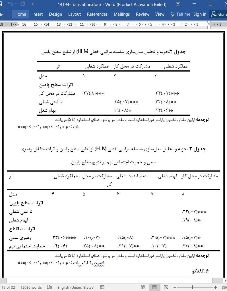 در حالی که تقاضا های شغلی به عنوان عواملی که میتوانند باعث کاهش تعهد کاری و عملکرد شغلی در محیط کار شوند، اما تاکنون به بررسی تقاضا های شغلی مبتنی بر ابهام مانند عدم امنیت شغلی و ابهام در نقش کار، در مطالعات پیشین، پرداخته نشده است. با توجه به این که رهبری و اعضای تیم ارکان اساسی برای کاهش تقاضا های شغلی کارمندان و افزایش عملکرد شغلی آنها هستند، مطالعه کنونی با استفاده از تئوری پردازش اطلاعات اجتماعی، نقش های رهبری سمی و حمایت اجتماعی تیم در شکل گیری تقاضا های شغلی کارمندان (یعنی عدم امنیت شغلی و ابهام نقش) و سپس تعهد کاری و عملکرد شغلی را بررسی می کند. نمونهای از 265 کارمند (50.9٪ مرد) در 48 تیم از سازمانهای خصوصی مختلف در مالزی در این مطالعه شرکت کردند. نتایج نشان دادند که رهبری سمی به طور مثبت با تقاضا های شغلی و به طور منفی با عملکرد شغلی مرتبط بود، در حالی که حمایت اجتماعی تیم به طور منفی با تقاضا های شغلی و به طور مثبت با تعهد کاری مرتبط بود. علاوه بر این، تعهد کاری نقش میانجی در رابطه بین تقاضا های شغلی و عملکرد شغلی داشت. ابهام نقش تنها در میانجیسازی رابطه بین رهبری سمی و تعهد کاری داشت، در حالی که عدم امنیت شغلی تنها در میانجیسازی رابطه بین حمایت اجتماعی تیم و تعهد کاری داشت. این مطالعه کنونی نقش ممتاز رهبری سمی و حمایت اجتماعی تیم را در ارتباط با تقاضا های شغلی کارمندان، تعهد کاری و عملکرد شغلی برجسته میکند.