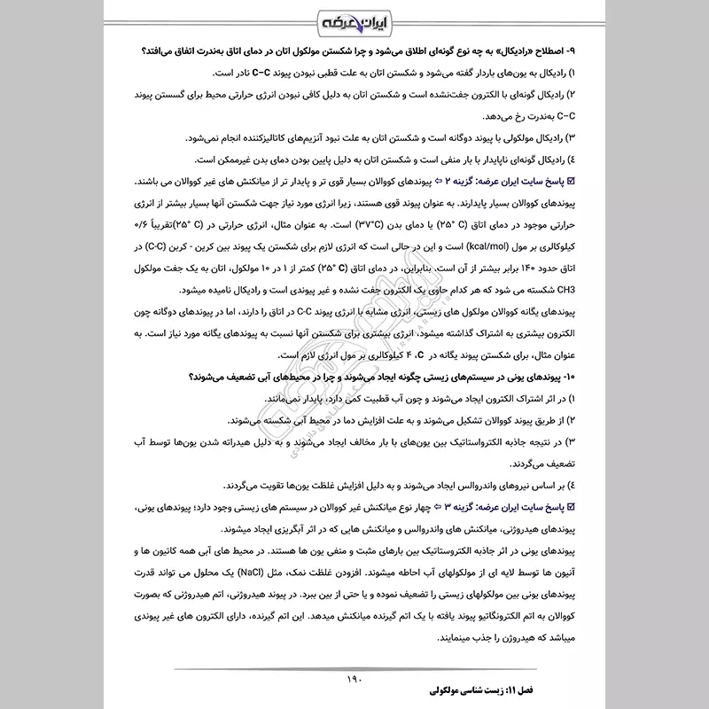 • فصل 10: سوالات شیمی آلی تالیف ایران عرضه - صفحه 153 (50 سوال)