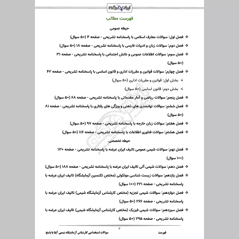 گروه آموزشی ایران عرضه اقدام به ارائه سوالات آزمون استخدامی کارشناس آزمایشگاه شیمی شرکت آب و فاضلاب نموده است. این بسته شامل سوالات عمومی و تخصصی با پاسخنامه تشریحی و قابلیت پرینت برای آزمون استخدامی کارشناس آزمایشگاه شیمی شرکت آب و فاضلاب میباشد. کارشناسان ما بر این باورند که این مجموعه عاملی مهم برای آمادگی شما در این آزمون بوده و قدمی مهم برای موفقیت در آن خواهد بود.
