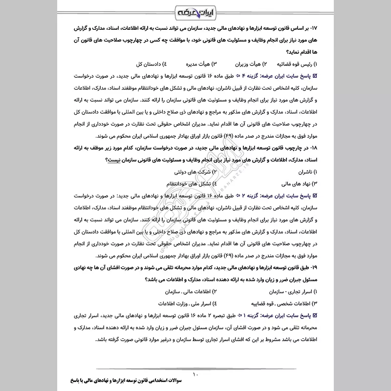 سوالات استخدامی سازمان بورس و اوراق بهادار با جواب