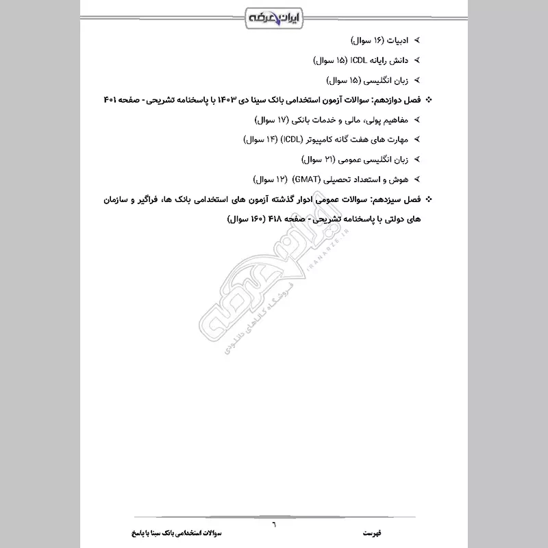 پاسخسلام وقت بخیر. نمونه سوالات موجود در بسته شامل سوالات عمومی می باشد. برای سوالات تخصصی لطفا اسم شغل مورد نظر خود را بفرمایید تا لینک مربوطه در صورت وجود خدمت شما ارسال گردد.