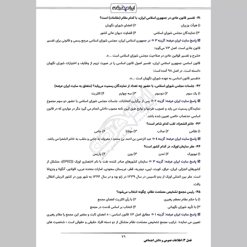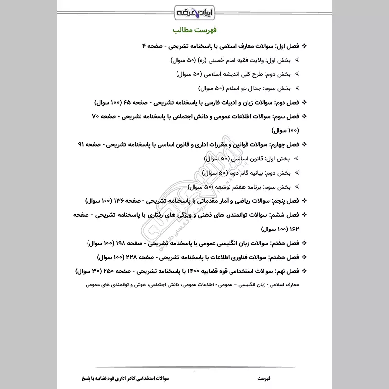 توجه! این بسته صرفا شامل سوالات عمومی مشاغل آزمون استخدامی کادر اداری قوه قضاییه می باشد. جهت دریافت سوالات تخصصی شغل مربوطه به بخش محصولات مشابه در پایین صفحه یا قسمت جستجو و منوی سایت مراجعه نمایید.