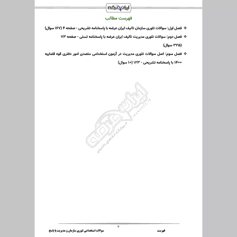یکی از دروس مهم رشته مدیریت درس تئوری های مدیریت می باشد که در بسیاری از آزمون های استخدامی سراسری یکی از منابع اعلامی می باشد. برای آمادگی شما عزیزان برای این درس این بسته که حاوی اصل سوالات و نمونه سوالات طراحی شده مطابق سرفصل های سازمان سنجش میباشد، توسط گروه ایران عرضه تهیه و در اختیار بازدیدکنندگان عزیز قرار گرفته است. این بسته برای تمامی آزمون های استخدامی دولتی و خصوصی (آموزش و پرورش، دستگاه های اجرایی، بانک ها و سایر سازمان ها) که در آن درس تئوری های مدیریت به عنوان منبع اعلام شده است، مفید می باشد. شما همینک می توانید این محصول را از فروشگاه ایران عرضه خریداری و دانلود نمایید و با مطالعه آن هر چه بیشتر آماده آزمون شوید.