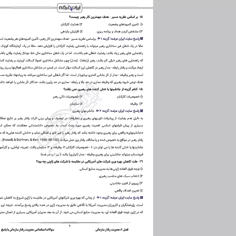 • فصل 1: سوالات مدیریت رفتار سازمانی تالیف ایران عرضه – صفحه 4 (75 سوال)