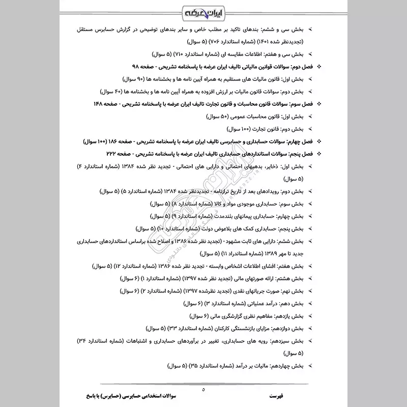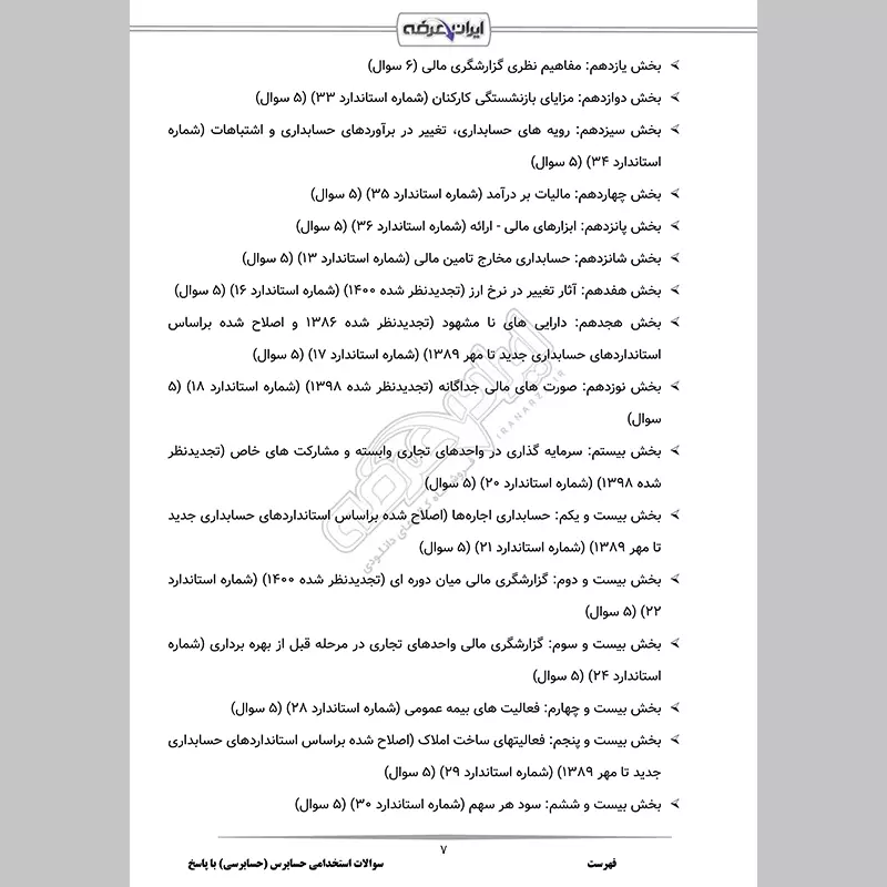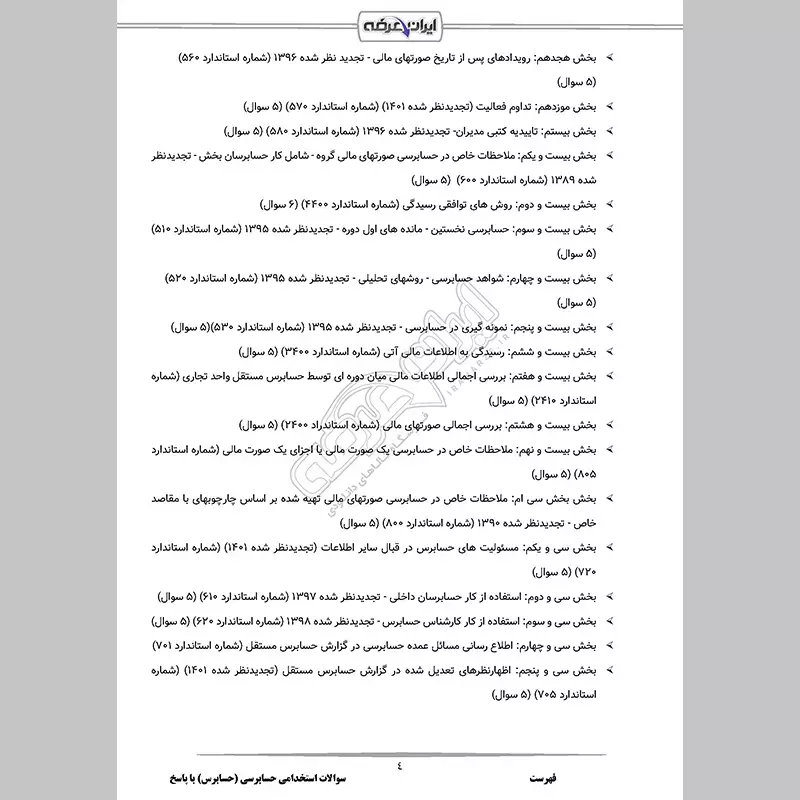 پاسخمن فقط سوالات استاندارد های حسابرسی راخواستم