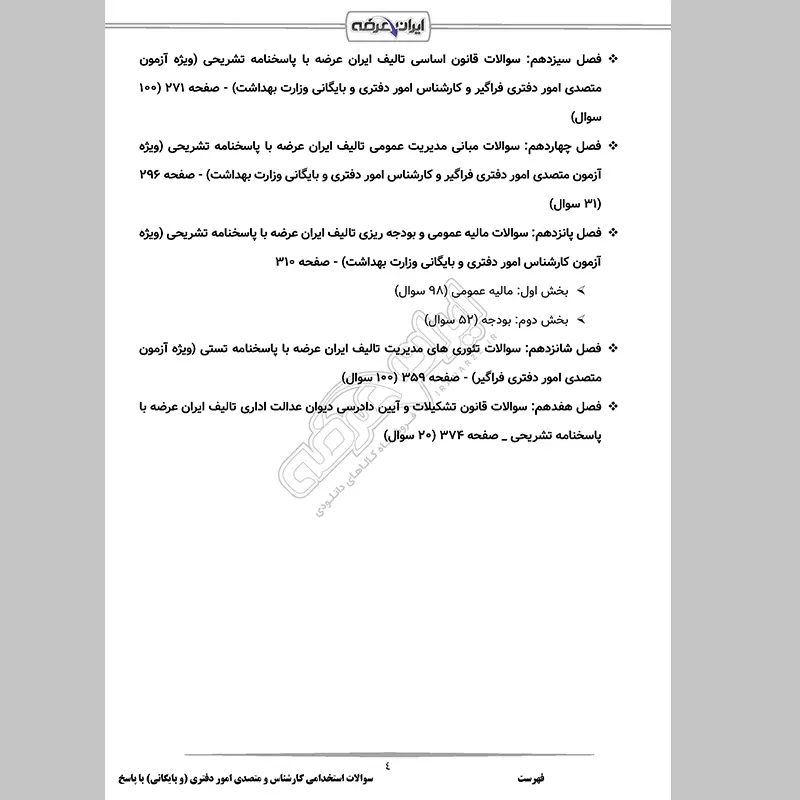 - فصل 4: سوالات قوانین و مقررات اداری و قانون اساسی با پاسخنامه تشریحی - صفحه 55 (60 سوال)