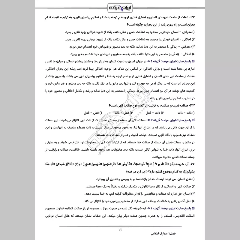 - فصل 1: سوالات معارف اسلامی با پاسخنامه تشریحی - صفحه 5 (60 سوال)