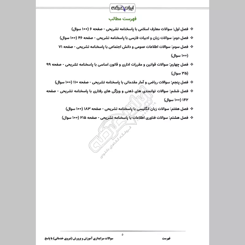 پاسخسلام وقت بخیر. بسته فعلی شامل نمونه سوالات هفت درس عمومی به همراه نمونه سوالات درس قوانین و مقررات اداری می باشد. در صورت اعلام منابع جدید بسته فوق نیز آپدیت خواهد شد.