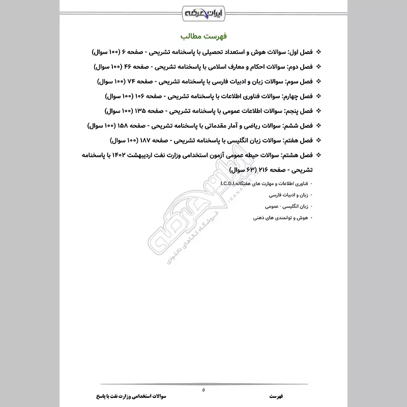 - فصل 8: سوالات حیطه عمومی آزمون استخدامی وزارت نفت اردیبهشت 1402 - صفحه 216 (63 سوال)