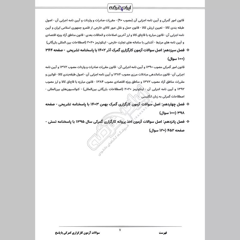 - فصل 12: اصل سوالات آزمون اخذ پروانه کارگزاری گمرکی سال 1401 - صفحه 297 (120 سوال)