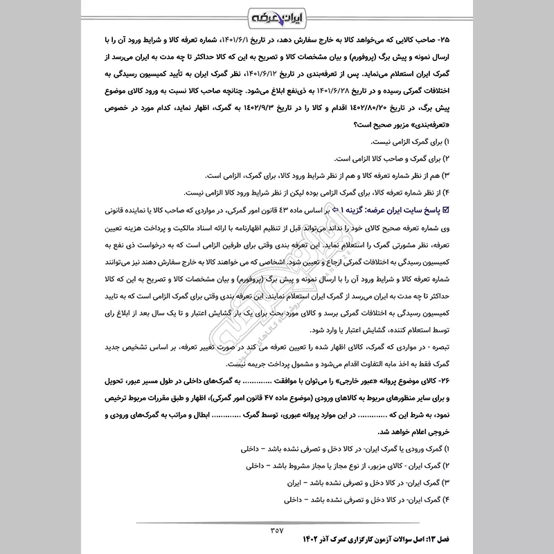 - فصل 13: اصل سوالات آزمون کارگزاری گمرک آذر 1402 - صفحه 344 (100 سوال)