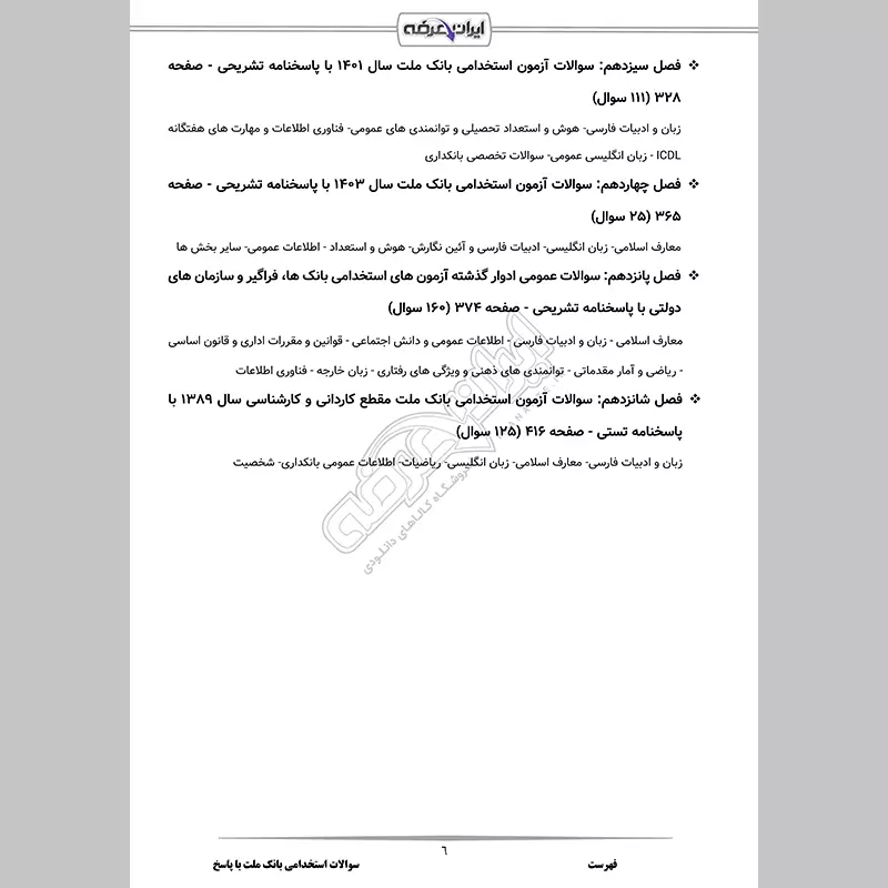 - فصل 14: سوالات آزمون استخدامی بانک ملت سال 1403 - صفحه 365 (25 سوال)