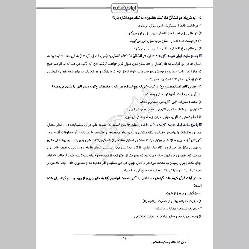 - فصل 1: سوالات احکام و معارف اسلامی - صفحه 7 (70 سوال)