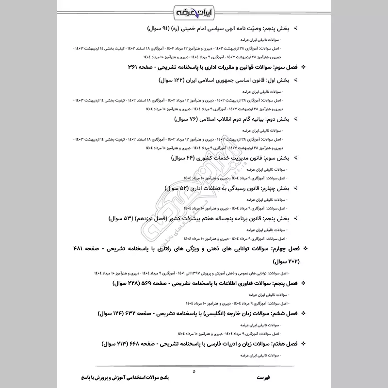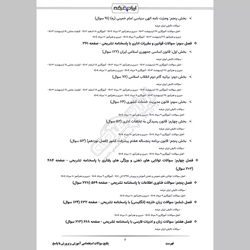 - بخش 3: مروری بر دستاوردهای چهل ساله انقلاب اسلامی ایران (129 سوال)