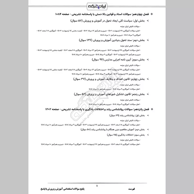 - بخش 3: آیین نامه اجرایی مدارس (96 سوال)
