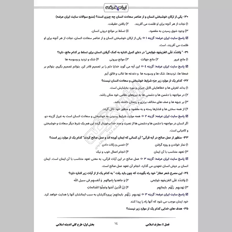 - فصل 1: سوالات معارف اسلامی - صفحه 8