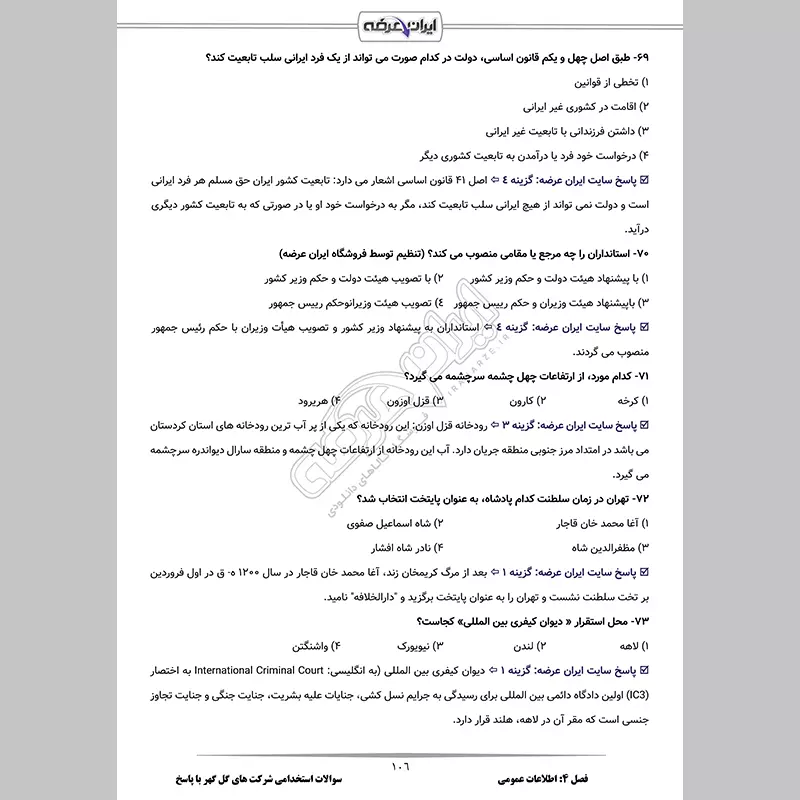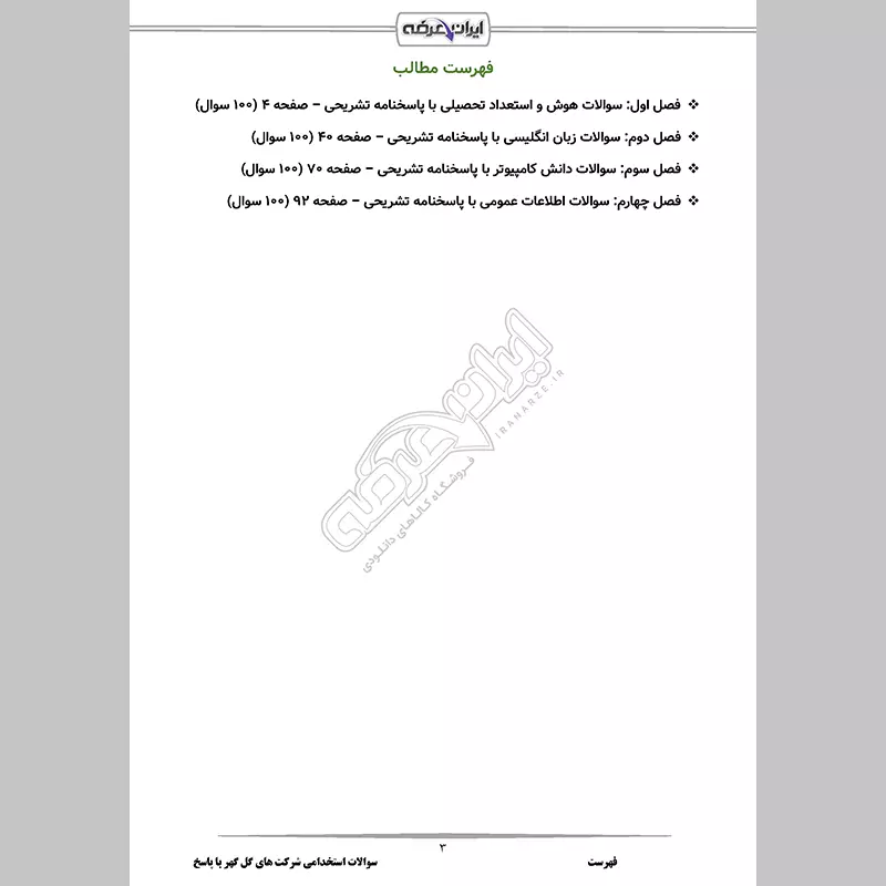 گروه آموزشی ایران عرضه، بسته کاملی از نمونه سوالات عمومی برای آزمون استخدامی شرکت های گل گهر را برای شما تدارک دیده است. با این پکیج، نه تنها به سوالات آزمون مسلط میشوید، بلکه مهارتهای خودتان را نیز ارتقا میدهید. این مجموعه شامل سوالات عمومی آزمون های استخدامی با پاسخنامه تشریحی برای درک عمیق مطالب میباشند. از سایر مزیت های این بسته دارا بودن قابلیت پرینت در فایل pdf جهت مطالعه آسان است. کارشناسان ما بر این باوردند که این مجموعه عاملی مهم برای آمادگی شما در این آزمون بوده و قدمی مهم برای موفقیت در آن خواهد بود.