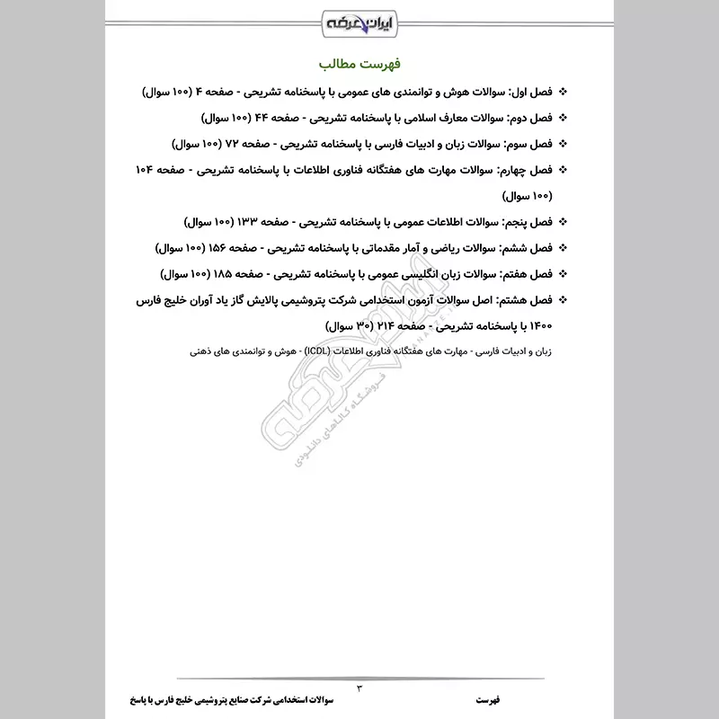 - فصل 8: اصل سوالات آزمون استخدامی شرکت پتروشیمی پالایش گاز یاد آوران خلیج فارس 1400 - صفحه 214 (30 سوال)