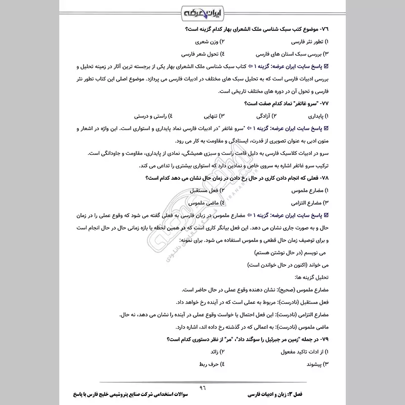 - فصل 3: سوالات زبان و ادبیات فارسی - صفحه 72 (100 سوال)