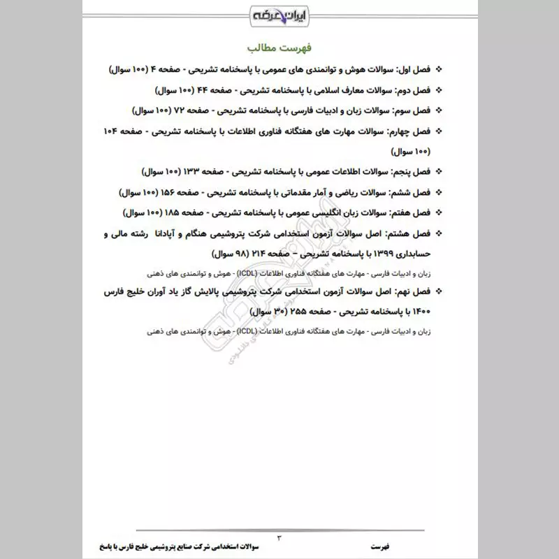 - فصل 9: اصل سوالات آزمون استخدامی شرکت پتروشیمی پالایش گاز یاد آوران خلیج فارس 1400 - صفحه 255 (30 سوال)