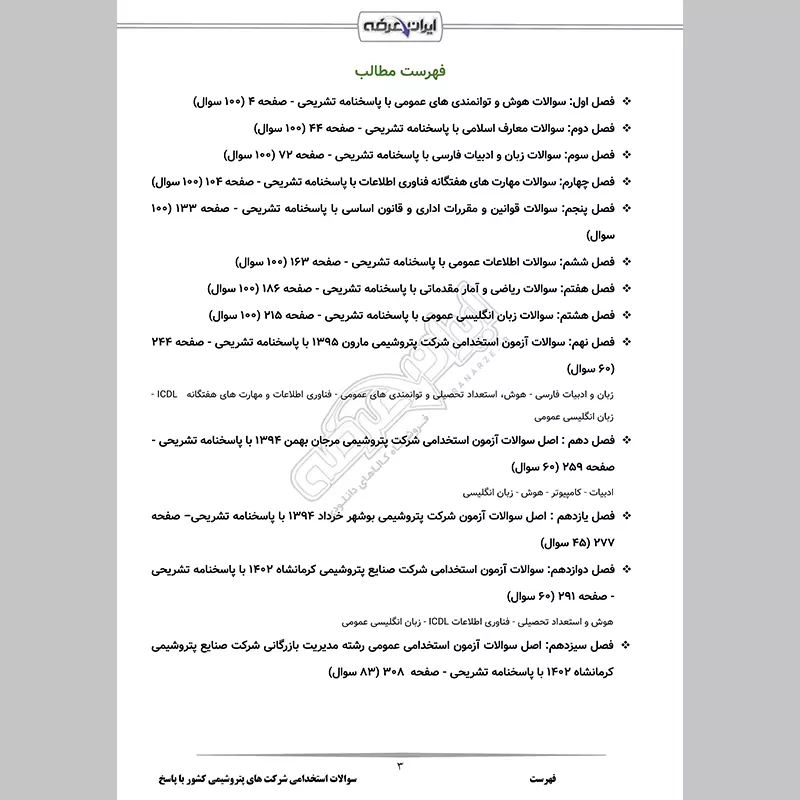 سوالات استخدامی شرکت های پتروشیمی کشور شامل 1108 سوال با پاسخنامه تشریحی به شرح زیر: