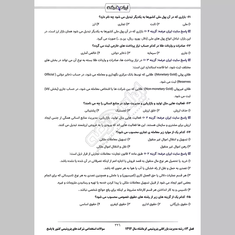 - فصل 13: اصل سوالات آزمون استخدامی عمومی رشته مدیریت بازرگانی شرکت صنایع پتروشیمی کرمانشاه 1402 - صفحه 308 (83 سوال)