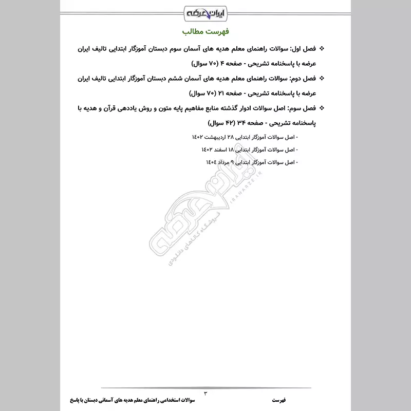 - فصل 1: سوالات راهنمای معلم هدیه های آسمان سوم دبستان آموزگار ابتدایی تالیف ایران عرضه - صفحه 4 (70 سوال)