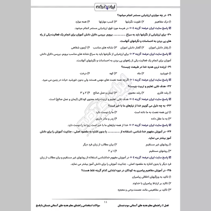 - فصل 3: اصل سوالات ادوار گذشته منابع مفاهیم پایه متون و روش یاددهی قرآن و هدیه - صفحه 34 (42 سوال)