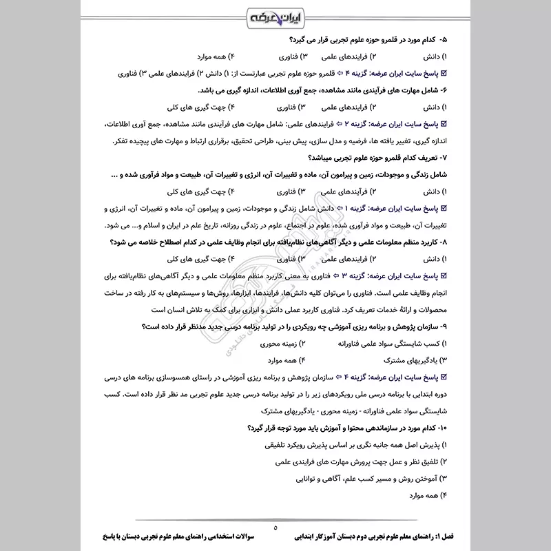 گروه آموزشی فروشگاه اینترنتی ایران عرضه اقدام به ارائه جزوات و سوالات رایگان استخدامی آموزگار ابتدایی منطبق با منابع اعلامی سازمان سنجش در سال ۱۴۰۱ برای آزمون اردیبهشت ۱۴۰۲ نموده است. در همین راستا و جهت آمادگی برای آزمون استخدام آموزگار ابتدایی آموزش و پرورش در سال ۱۴۰۲ بسته سوالات راهنمای معلم آموزش علوم تجربی دوم، چهارم و ششم دبستان آماده شده است که این مجموعه شامل سوالات طراحی شده بر اساس منابع اعلام شده جهت آزمون استخدامی آموزگار ابتدایی می باشد. تهیه این بسته آموزشی میتواند تاثیر به سزایی در آمادگی شما جهت شرکت در آزمون استخدامی آموزگار ابتدایی داشته باشد.
