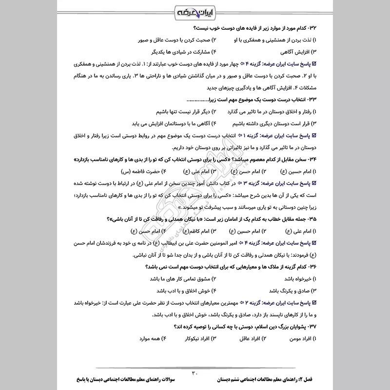 - فصل 2: سوالات راهنمای معلم مطالعات اجتماعی ششم دبستان آموزگار ابتدایی تالیف ایران عرضه - صفحه 23 (90 سوال)