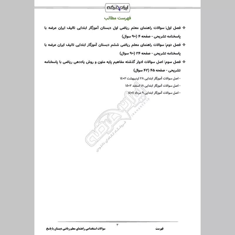 سوالات استخدامی شب آزمون آموزگار ابتدایی (3 حیطه) با پاسخنامه تشریحی