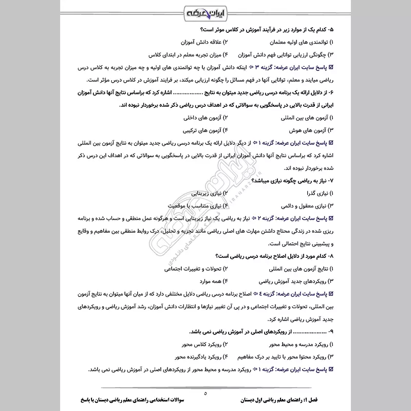 سوالات استخدامی آموزگار ابتدایی با جواب (تخصصی)