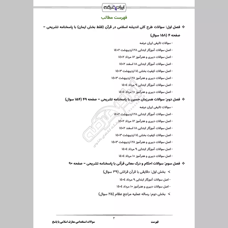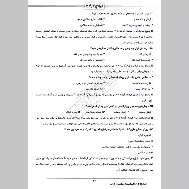 - فصل 1: سوالات طرح کلی اندیشه اسلامی در قرآن (فقط بخش ایمان) با پاسخنامه تشریحی – صفحه 4 (158 سوال)