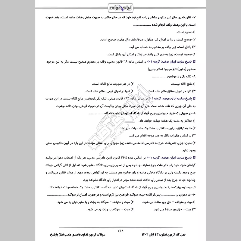 1404/08/08 آپدیت سوالات حقوق مدنی