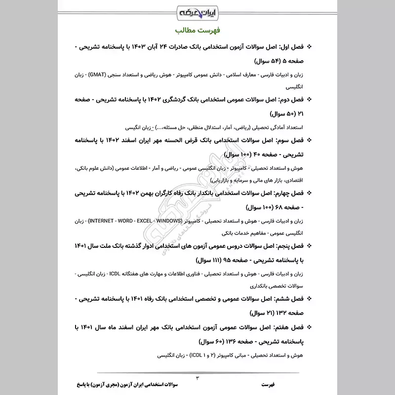 سوالات استخدامی ایران آزمون (مجری آزمون) شامل 921 سوال با پاسخنامه تشریحی به شرح زیر: