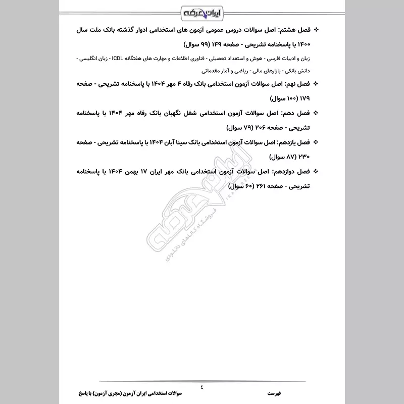 - فصل 10: اصل سوالات آزمون استخدامی شغل نگهبان بانک رفاه مهر 1404 - صفحه 206 (79 سوال)