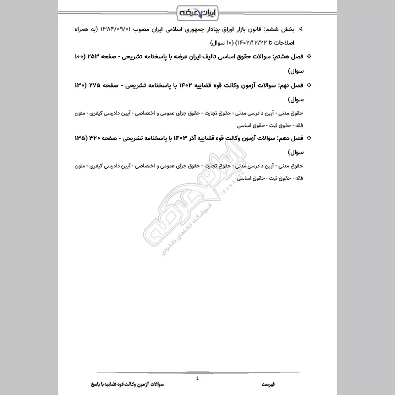 - فصل 8: سوالات حقوق اساسی تالیف ایران عرضه - صفحه 253 (100 سوال)